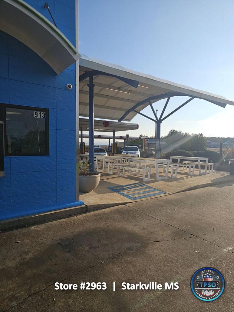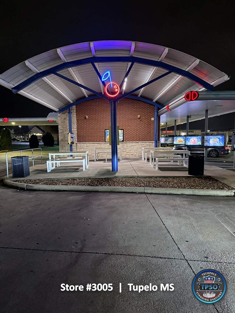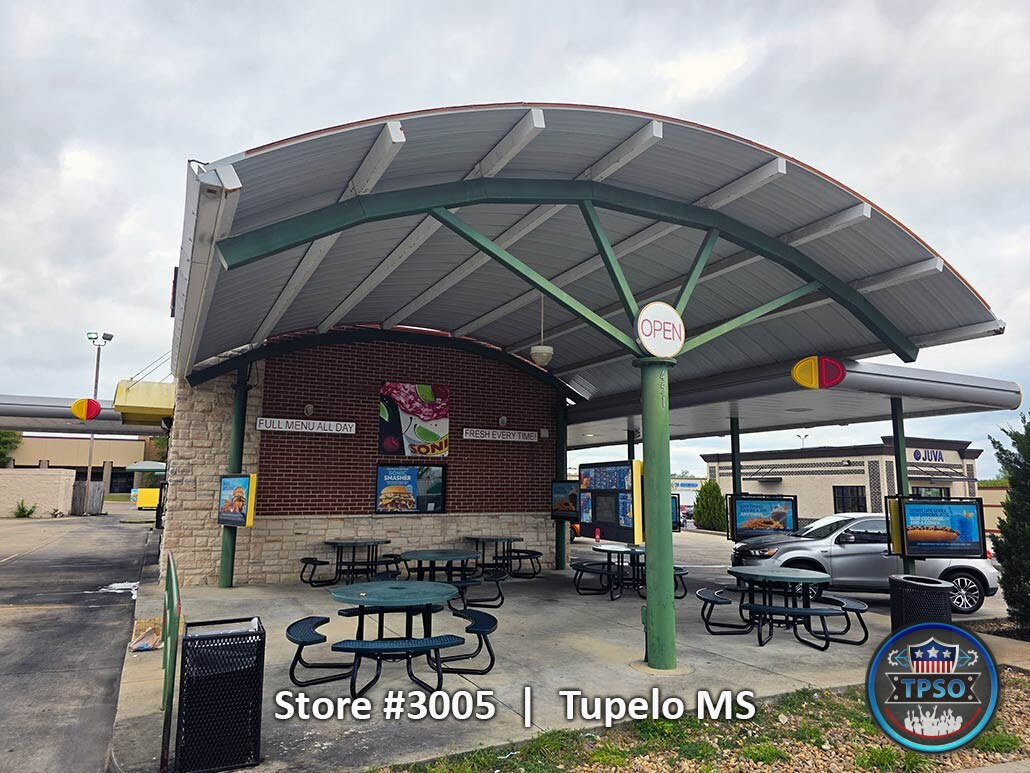 These photos were taken at the time of project completion and reflect the final condition of the entire property. Photographed at final walkthrough, these images show the completed remodel and the fully restored, service-ready Sonic property.