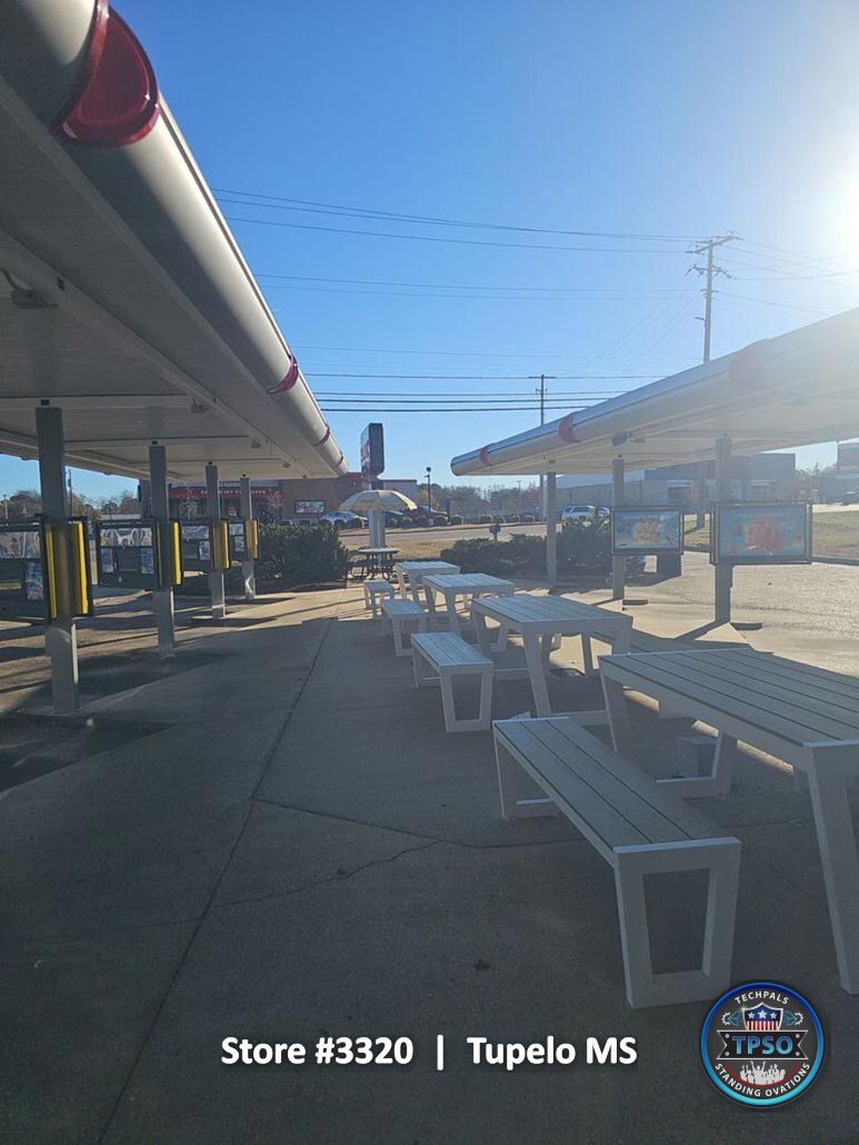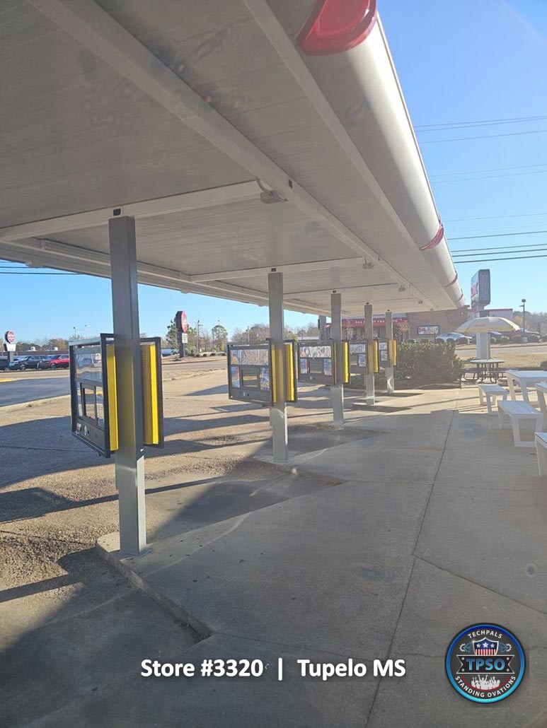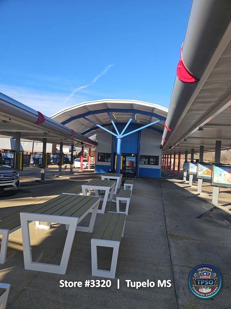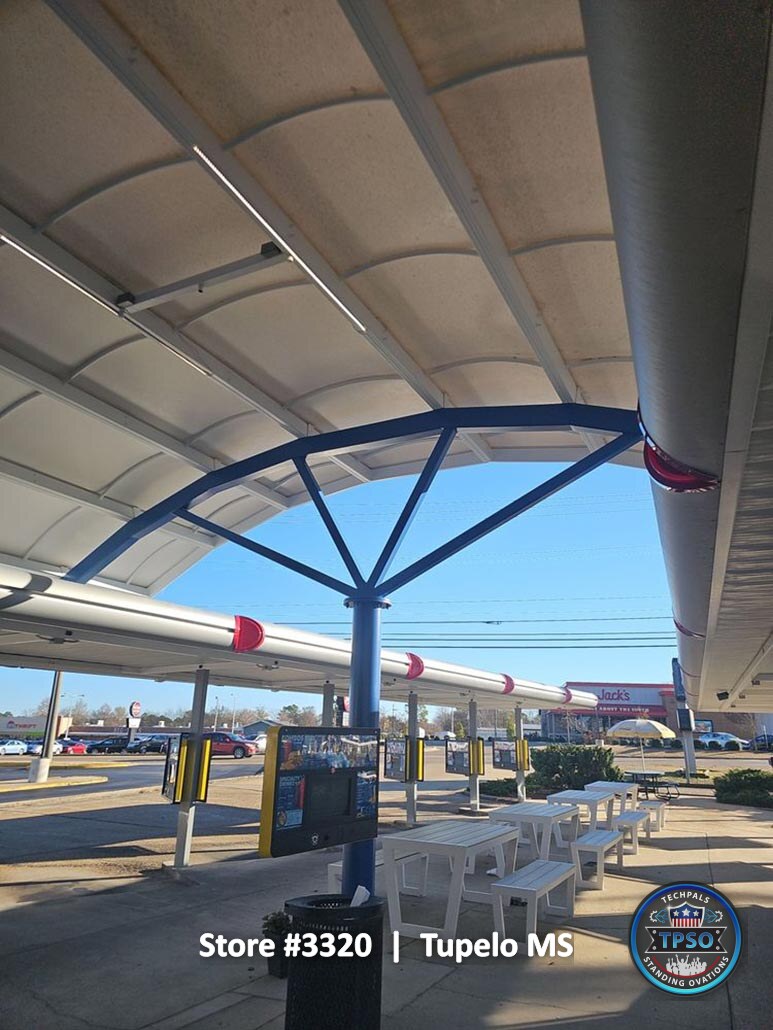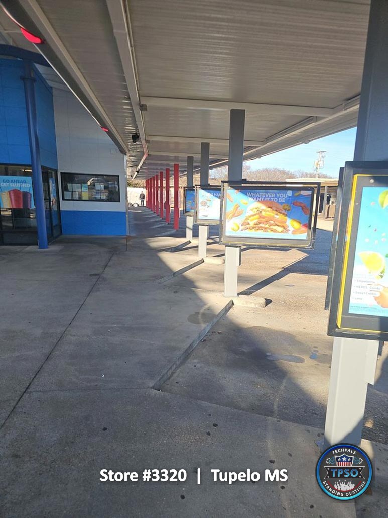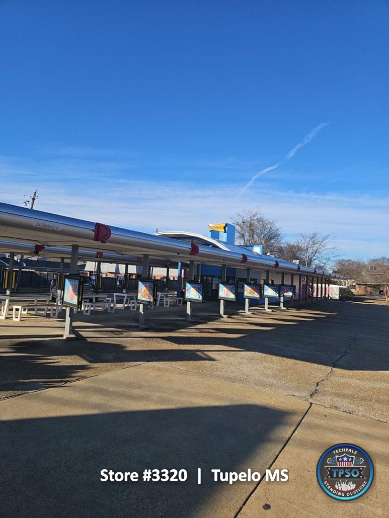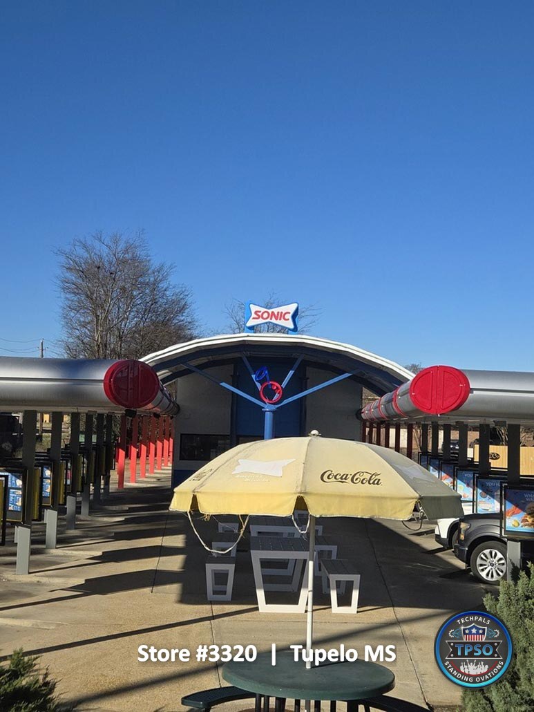 These photos were taken at the time of project completion and reflect the final condition of the entire property. They highlight the completed remodel, showing the transformation from construction to a clean, fully operational Sonic location ready for daily service.